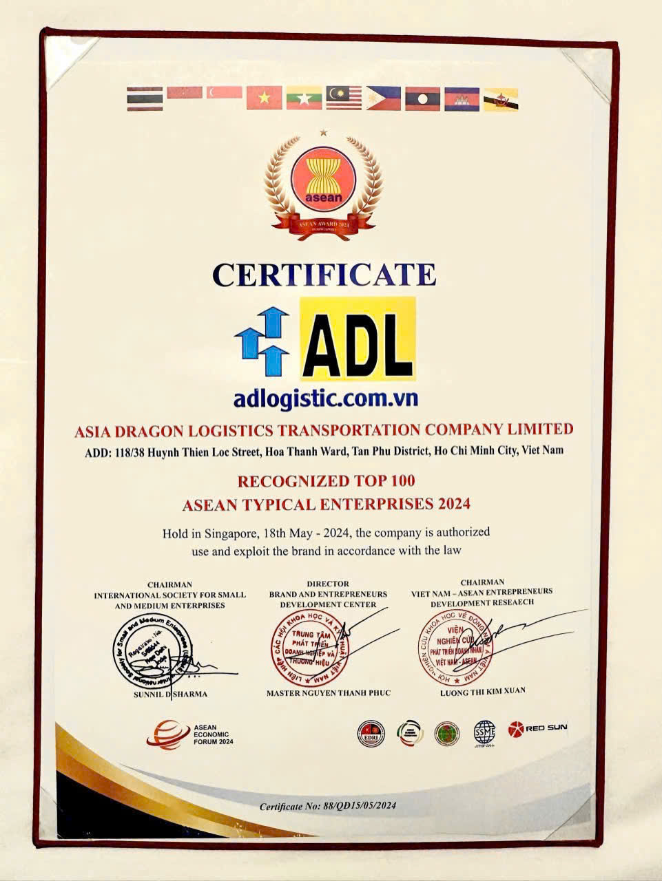 Đáng kể đến CÔNG TY TNHH ADL  được vinh dự đón nhận giải thưởng Sao Vàng Doanh Nhân Đất Việt năm 2020, lọt top 50 thương hiệu tín nhiệm năm 2020, và đặc biệt nhất chúng tôi tự hào được vinh danh top 100 thương hiệu châu Á năm 2024